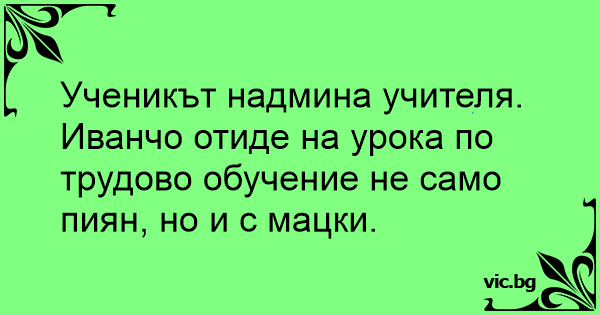 • Вицове от Facebook от нашата страница https://www.facebook.com/www.vic.bg