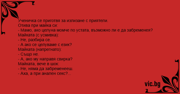 - Мамо, ако целуна момче по устата, възможно ли е да забременея?