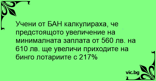 Учени от БАН калкулираха, че предстоящото увеличение на минималната заплата от 560 лв. на 610 лв. ще увеличи приходите на бинго лотариите с 217%