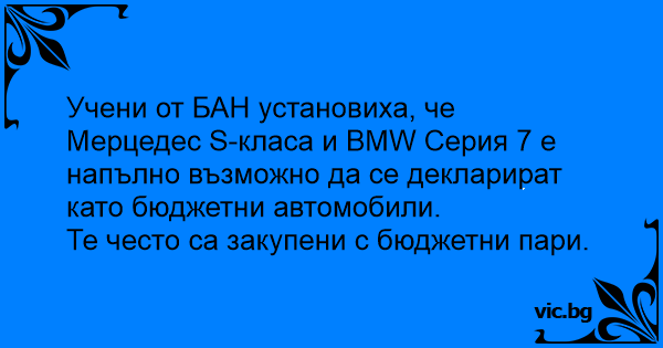 Учени от БАН установиха, че Мерцедес S-класа и BMW Серия 7 е напълно възможно да се декларират като бюджетни автомобили.