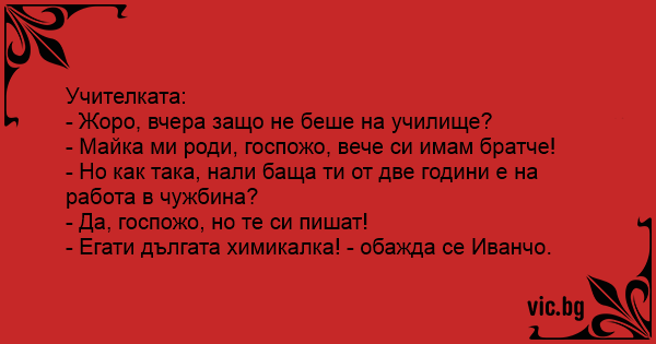 Учителката: - Жоро, вчера...