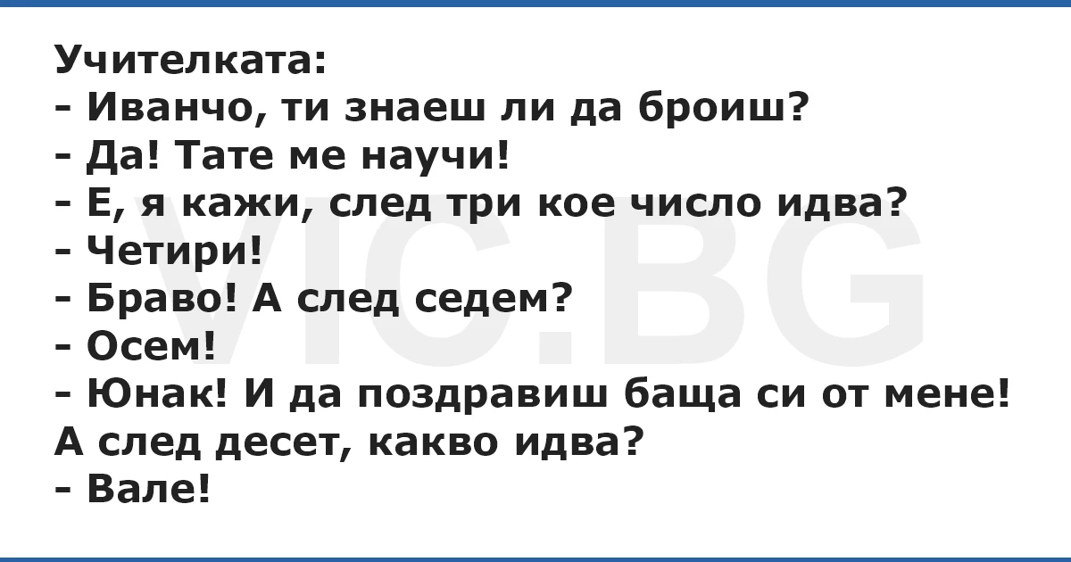 - Иванчо, ти знаеш ли да броиш?