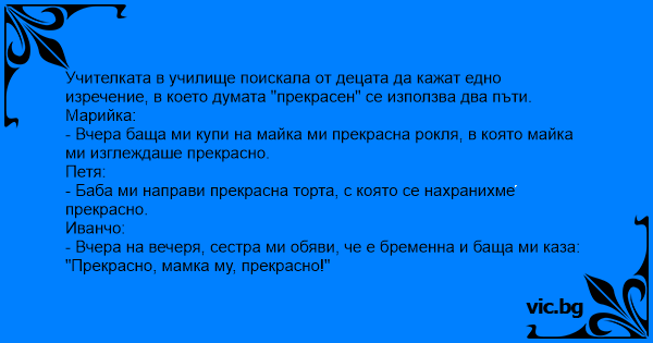 Учителката в училище поискала от децата да кажат едно изречение, в което думата "прекрасен" се използва два пъти.