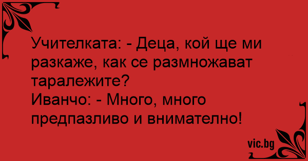 En classe de sciences naturelles, le professeur demande à Toto : - Peux-tu me dire comment se reproduisent les hérissons ? - En faisant très, très attention m'sieur! répond Toto.