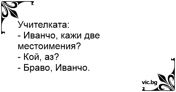 - Иванчо, кажи две местоимения?