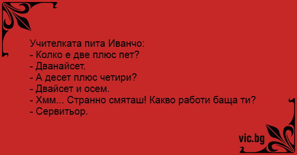 • Вицове от Facebook от нашата страница https://www.facebook.com/www.vic.bg