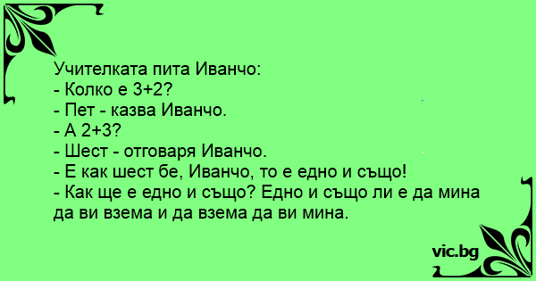 Учителката пита Иванчо: