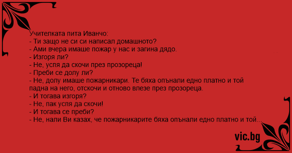 • Вицове от Facebook от нашата страница https://www.facebook.com/www.vic.bg