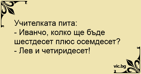 - Иванчо, колко ще бъде шестдесет плюс осемдесет?