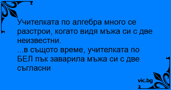 ...в същото време, учителката по БЕЛ пък заварила мъжа си с две съгласни