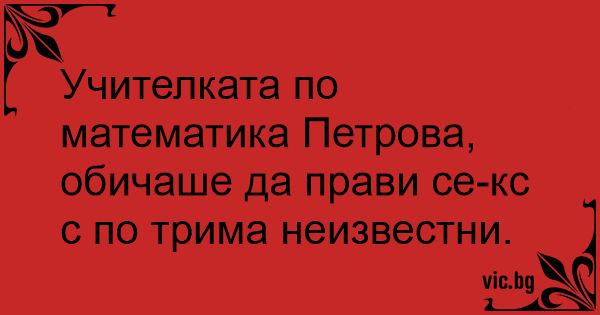 Учителката по математика Петрова, обичаше да прави cekc с по трима неизвестни.