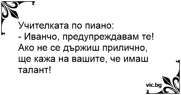 - Иванчо, предупреждавам те! Ако не се държиш прилично, ще кажа на вашите, че имаш талант!