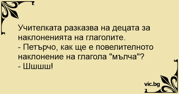 - Петърчо, как ще е повелителното наклонение на глагола "мълча"?