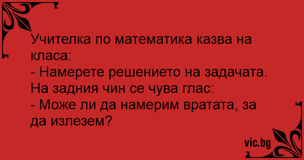 • Вицове от Facebook от нашата страница https://www.facebook.com/www.vic.bg