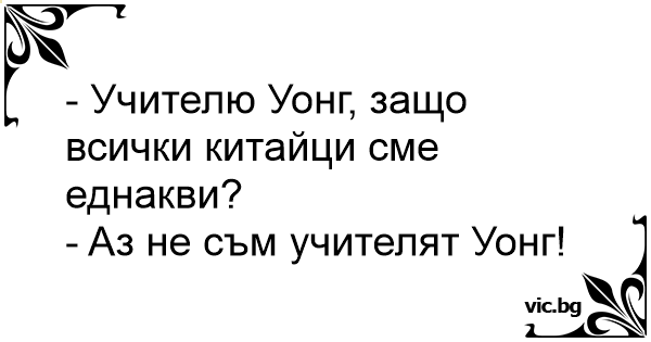 - Учителю Уонг, защо всички китайци сме еднакви?