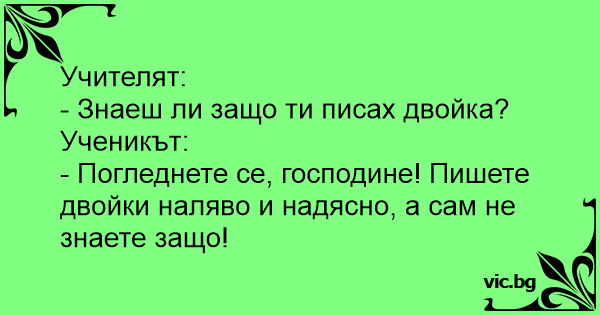 - Погледнете се, господине! Пишете двойки наляво и надясно, а сам не знаете защо!