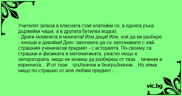 • Вицове от Facebook от нашата страница https://www.facebook.com/www.vic.bg