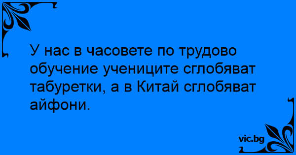 У нас в часовете по трудово обучение учениците сглобяват табуретки, а в Китай сглобяват айфони.