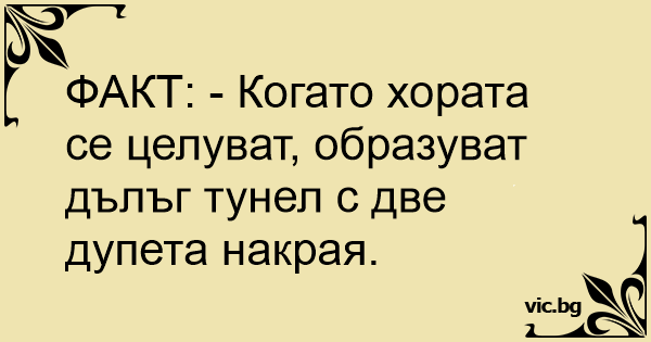 ФАКТ: - Когато хората се целуват, образуват дълъг тунел с две дупета накрая.