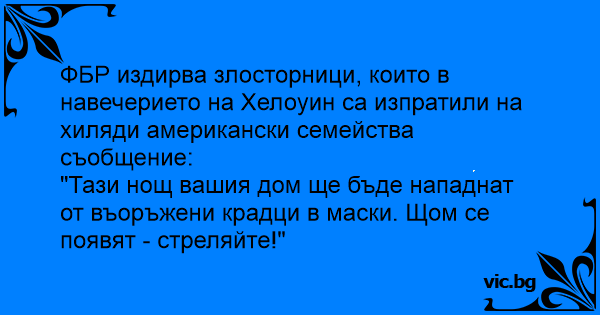 ФБР издирва злосторници, които в навечерието на Хелоуин са изпратили на хиляди американски семейства съобщение: