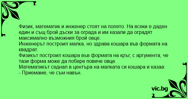 • Вицове от Facebook от нашата страница https://www.facebook.com/www.vic.bg