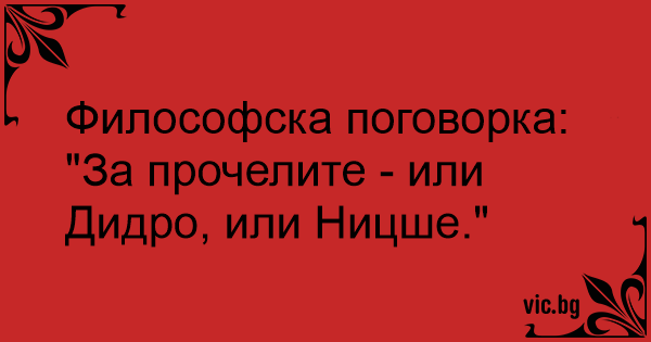 Философска поговорка: "За прочелите - или Дидро, или Ницше."