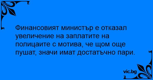 Финансовият министър е отказал увеличение на заплатите на полицаите с мотива, че щом още пушат, значи имат достатъчно пари.