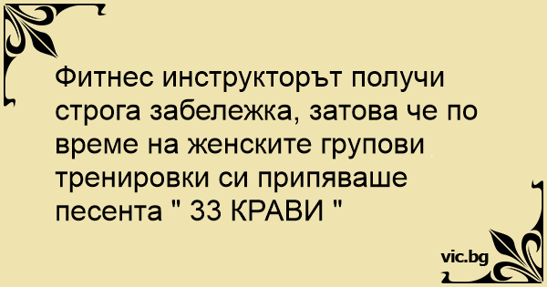 Фитнес инструкторът получи строга забележка, затова че по време на женските групови тренировки си припяваше песента " 33 КРАВИ "