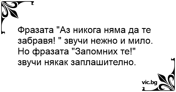 Фразата "Аз никога няма да те забравя! " звучи нежно и мило. Но фразата "Запомних те!" звучи някак заплашително.
