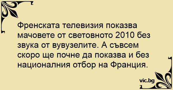 Френската телевизия показва мачовете от световното 2010 без звука от вувузелите. А съвсем скоро ще почне да показва и без националния отбор на Франция.