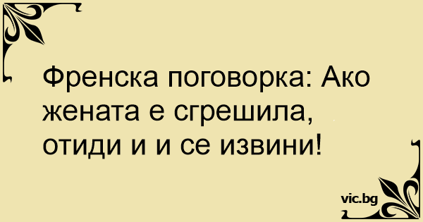 Френска поговорка: Ако жената е сгрешила, отиди и и се извини!<br />