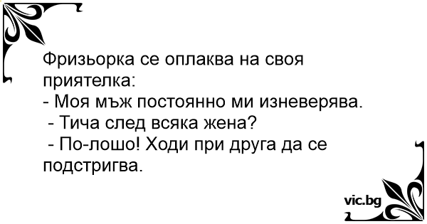 • Вицове от Facebook от нашата страница https://www.facebook.com/www.vic.bg