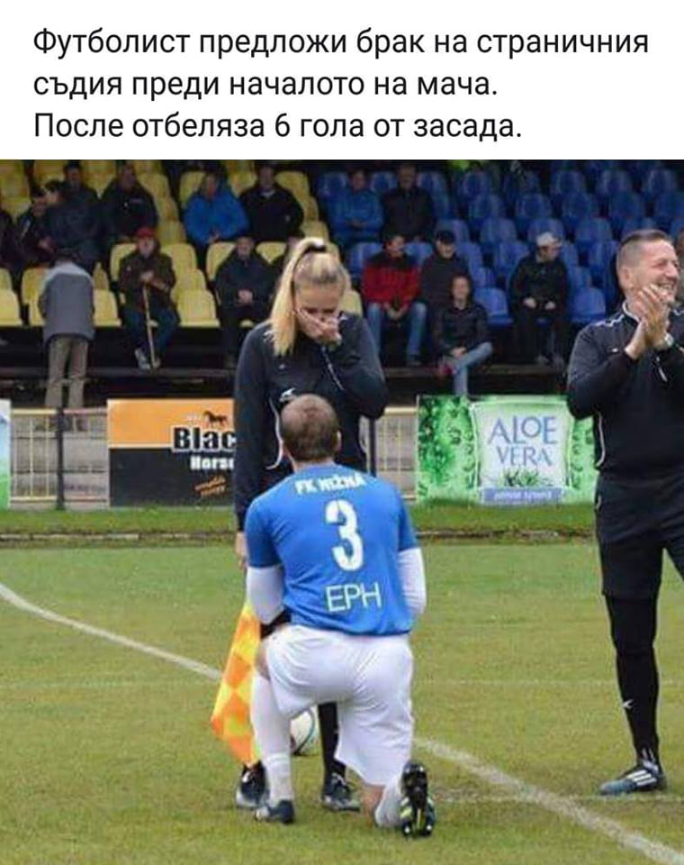 Футболист предложи брак на страничния съдия преди началото на мача. После отбеляза 6 гола от засада