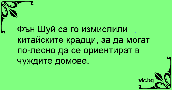 Фън Шуй са го измислили китайските крадци, за да могат по-лесно да се ориентират в чуждите домове.