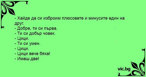 • Вицове от Facebook от нашата страница https://www.facebook.com/www.vic.bg