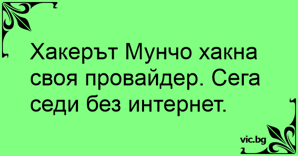 Хакерът Мунчо хакна своя провайдер. Сега седи без интернет.