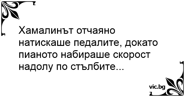 Хамалинът отчаяно натискаше педалите, докато пианото набираше скорост надолу по стълбите...