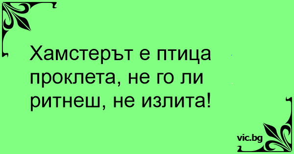 Хамстерът е птица проклета, не го ли ритнеш, не излита!