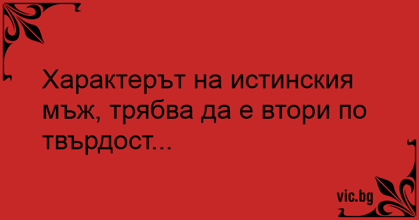 Характерът на истинския мъж, трябва да е втори по твърдост...