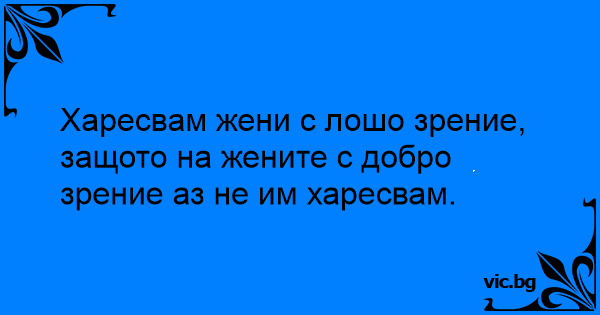 Харесвам жени с лошо зрение, защото на жените с добро зрение аз не им харесвам.