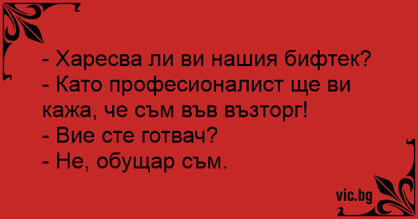 - Харесва ли ви нашата пържола? - пита сервитьор, клиент