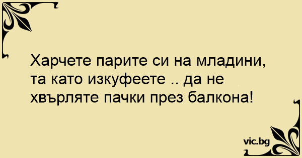 Харчете парите си на младини, та като изкуфеете .. да не хвърляте пачки през балкона!