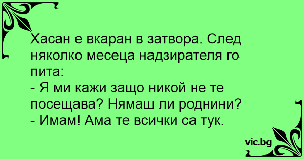 Хасан е вкаран в затвора. След няколко месеца надзирателя го пита: