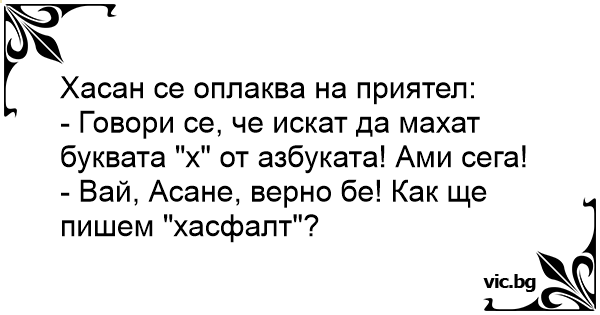 - Говори се, че искат да махат буквата "х" от азбуката! Ами сега!