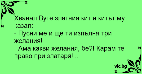 Хванал Вуте златния кит и китът му казал: