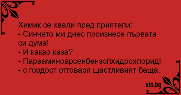- Парааминоарсенбензолхидрохлорид! - с гордост отговаря щастливият баща.