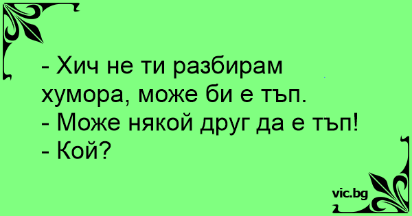 - Хич не ти разбирам хумора, може би е тъп.