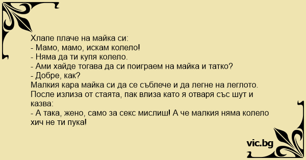 • Вицове от Facebook от нашата страница https://www.facebook.com/www.vic.bg