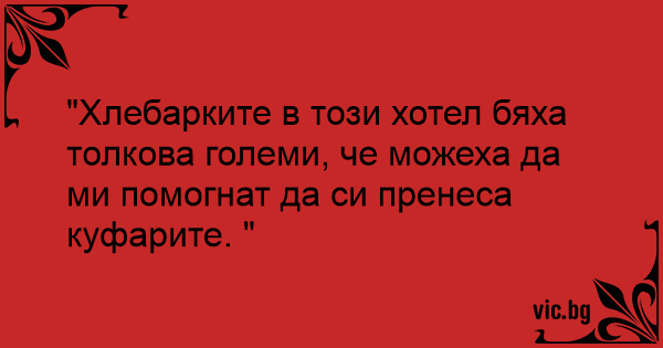 "Хлебарките в този хотел бяха толкова големи, че можеха да ми помогнат да си пренеса куфарите. "