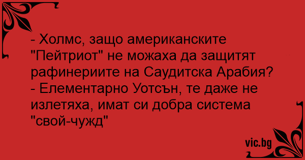 - Скажите, Холмс, а почему американские "Пэтриоты" не смогли отразить налет на Саудовскую Аравию?